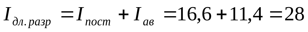 где Iпост – ток постоянной нагрузки рабочего режима, А; Iав – ток временной аварийной нагрузки, А.