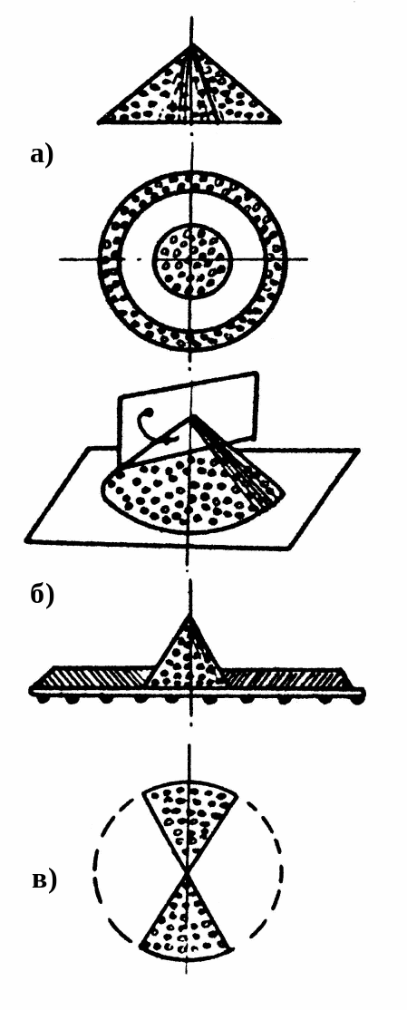 Рис. 1.1. Перемешивание и сокращение пробы методом кольца и конуса
