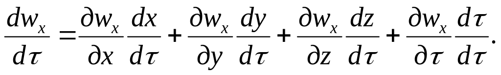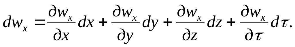Приращение скорости частицы жидкости вдоль какой–либо оси, например, оси х за время выразится как разность значений проекций скорости: