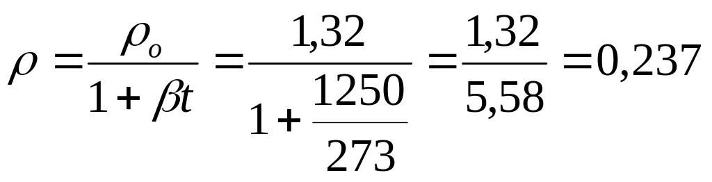 Определим плотность продуктов горения при 1250оС.