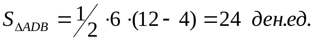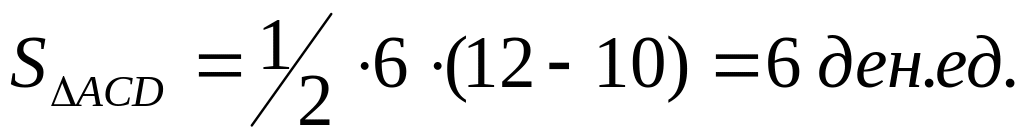 Таким образом, цена равная 12 – это координаты точки D. Теперь можно рассчитать выигрыш потребителя как площадь данного треугольника:
