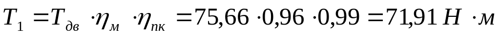- обертовий момент на ведучому валу редуктора, T1=71,91 Н· м;
