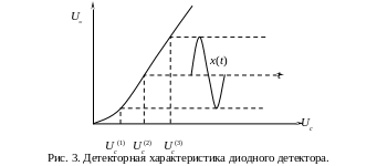 Зависимость постоянной составляющей U= от амплитуды приложенного напряжения Uc дается детекторной характеристикой (рис. 3).