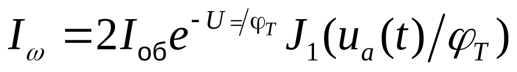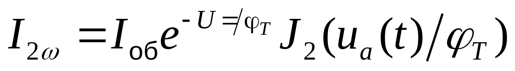 В режиме «слабых» сигналов, представив функцию J0(ua(t)/φT) в виде ряда, нетрудно показать, что детекторная характеристика имеет квадратичный вид, т.е.