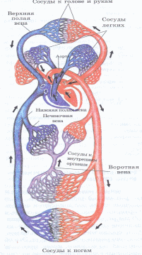 Аорта, капилляры, нижняя и верхняя полые вены |
