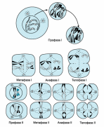 Редукционное деление клеток с уменьшением числа хромосом вдвое. Характерно половым клеткам.