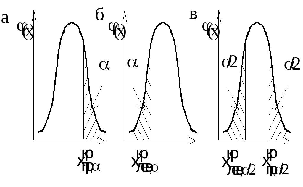 Критические области бывают односторонние и двухсторонние. Смысл этих областей показан на рис. 3.1.