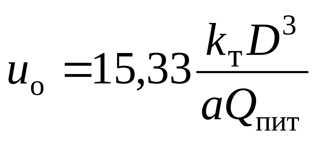где Qпит – производительность гидроциклона, м3/с; kт - коэффициент, учитывающий влияние концентрации примесей и турбулентность потока (для агрегативно-устойчивых суспензий с небольшой концентрацией kт = 0,04); a – коэффициент, учитывающий затухание тангенциальной скорости, равен 0,45.