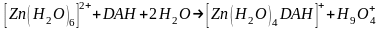 - комплекс [Zn(H2O)5(DAH)]+, в котором лиганд присоединяется через один из атомов азота гидразидной группы, ∆Eкомп=-86,63 ккал/моль, ΔN=0,503 и три водородные связи.