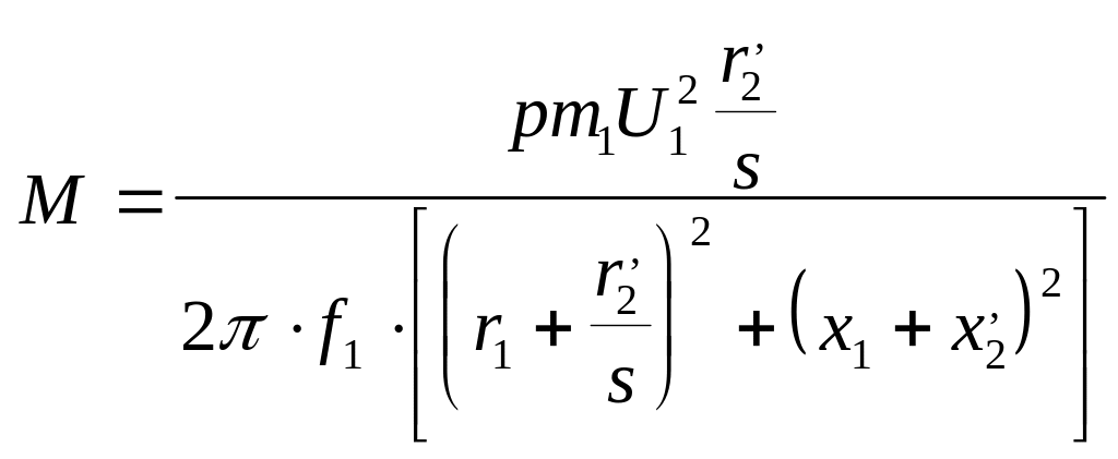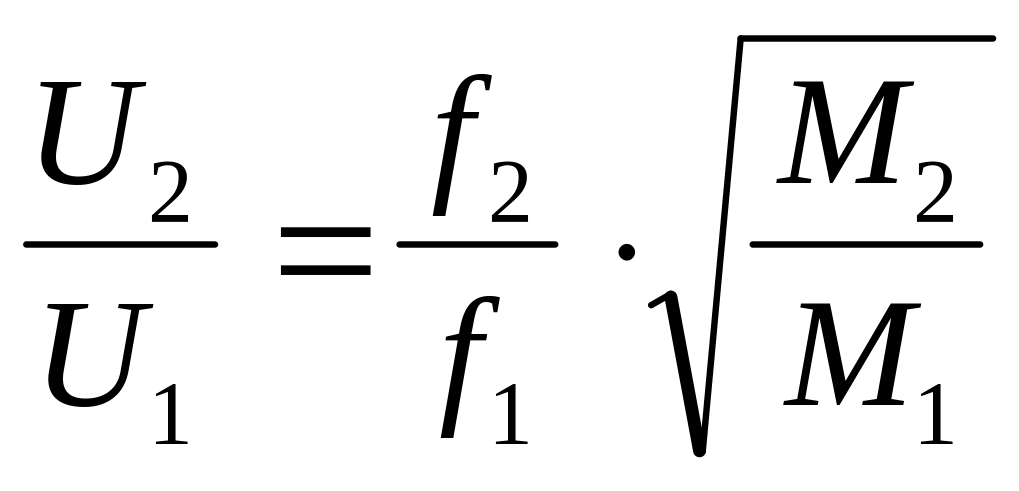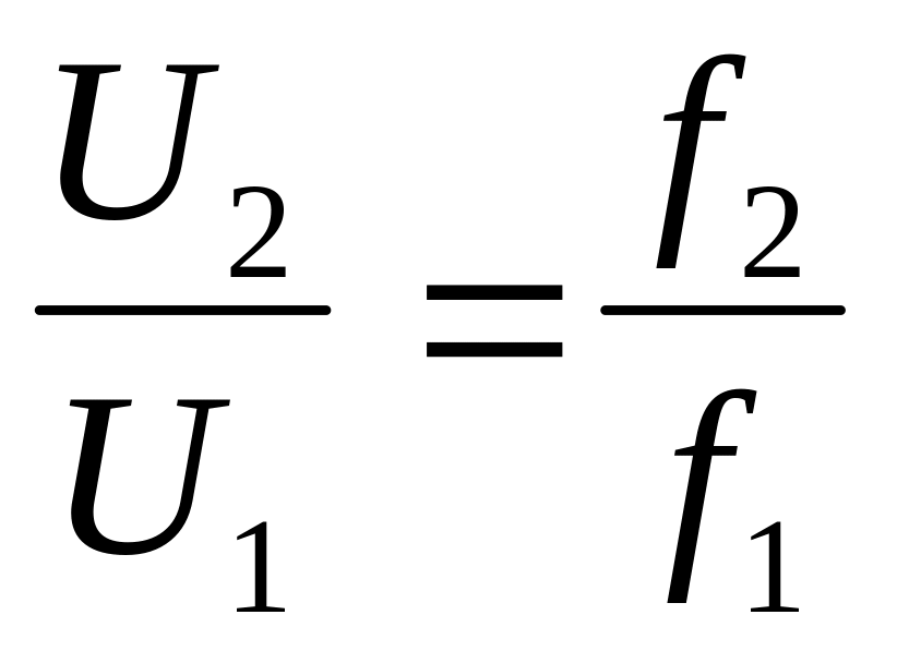 Где M1 и U1 момент и напряжение для номинальной частоты питающего тока f1 , а M2 и U2 момент и напряжение для нового значения частоты питающего тока f2 .