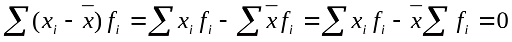 2. Сумма отклонений индивидуальных значений признака от средней арифметической равна нулю