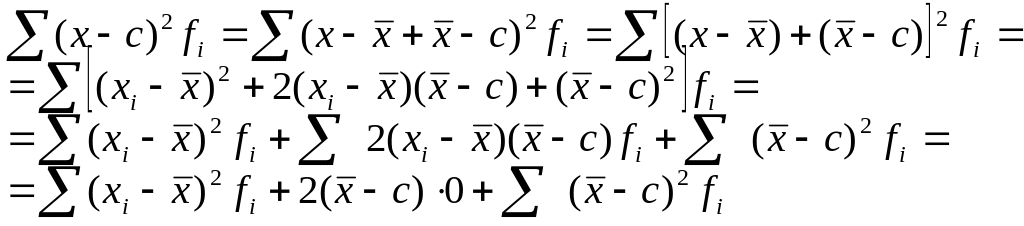 Следовательно, сумма квадратов отклонений индивидуальных шачений признака от произвольной величины С больше суммы кпадратов их отклонений от своей средней на величину