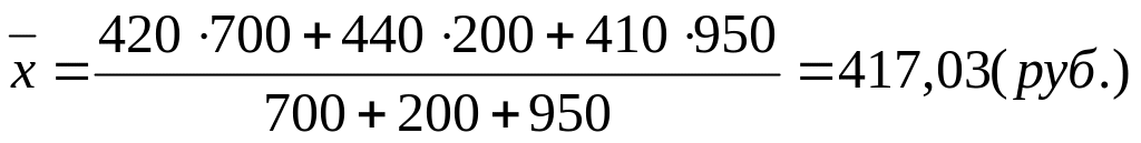В отдельных случаях веса могут быть представлены не абсолютными величинами, а относительными (в процентах или долях единицы). Так, в приведенном выше примере количество проданных в ходе каждой сделки акций соответственно составляет 37,8% (0,378); 10,8% (0,108) и 51,4% (0,514) от их общего числа. Тогда, с учетом несложного преобразования формулы (1) получим