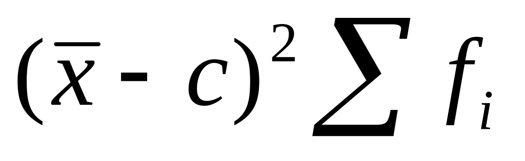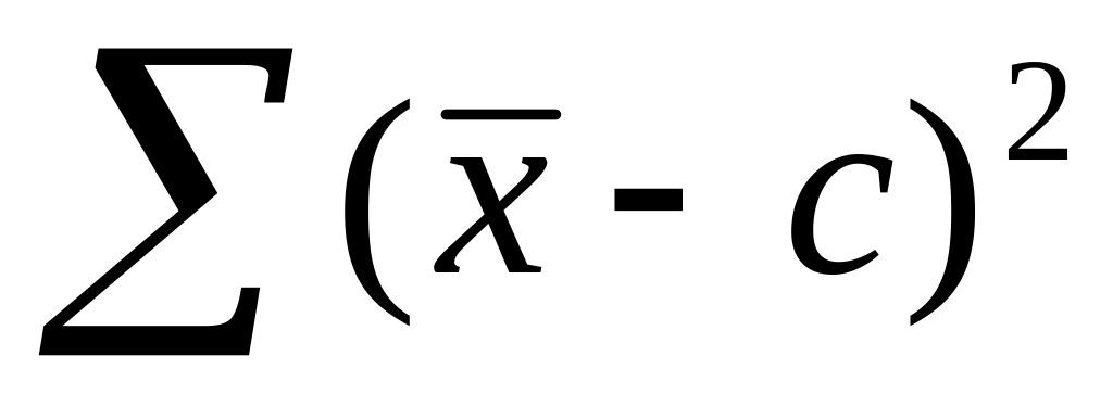 3. Сумма квадратов отклонений индивидуальных значений при знака от средней арифметической меньше, чем сумма квадратов их отклонений от любой другой произвольной величины С,