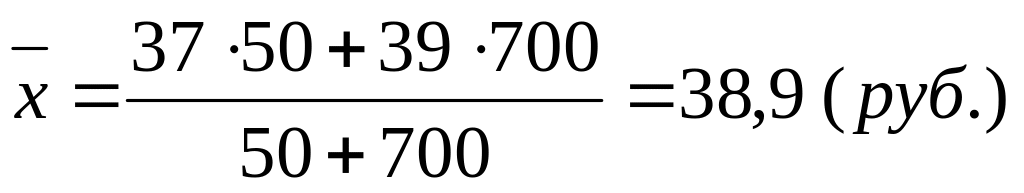 Можно ли по имеющимся данным определить среднюю себестоимость данной продукции по двум предприятиям, вместе взятым? Можно, но только в том случае, когда объемы производства данной продукции на двух предприятиях совпадают. Тогда средняя себестоимость составит 38,0 руб. (доказательство этого правила будет приведено ниже). Однако на первом предприятии за рассматриваемый период может быть произведено, к примеру, 50 единиц продукции, а на втором — 700 единиц. Тогда для расчета средней себестоимости потребуется уже средняя арифметическая взвешенная