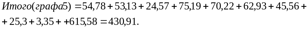 Итоговое значения графы 5 считается суммированием всех значений данной графы: