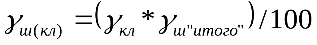 Выход класса к шихте (графы 3 и 7) считается по формуле: