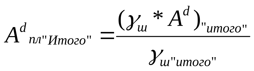 Аdш «Итого» = 2189,47/100,0 = 21,895%.