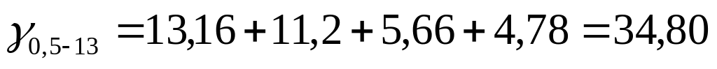 Аналогично составляем таблицу 10 для класса 0,5 – 13 мм (классы 6-13, 3-6, 1-3 и 0,5-1 мм).