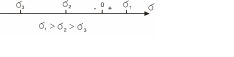 При любом напряженном состоянии существует такое положение элемента, при котором на его гранях есть только нормальные напряжения, называемые главными, а касательные напряжения отсутствуют. Главные напряжения расположены на главных площадках. Главные напряжения обозначают σ1, σ2, σ3. Их нумерация показана на рисунке 5. На оси σ круговой диаграммы Мора ноль может располагаться в любом месте. Это зависит от вида напряженного состояния.