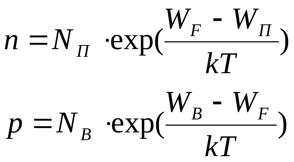 Здесь NП — эффективная плотность состояний в зоне проводимости, приведенная к уровню WП (ко дну зоны проводимости);