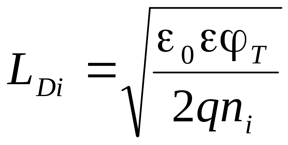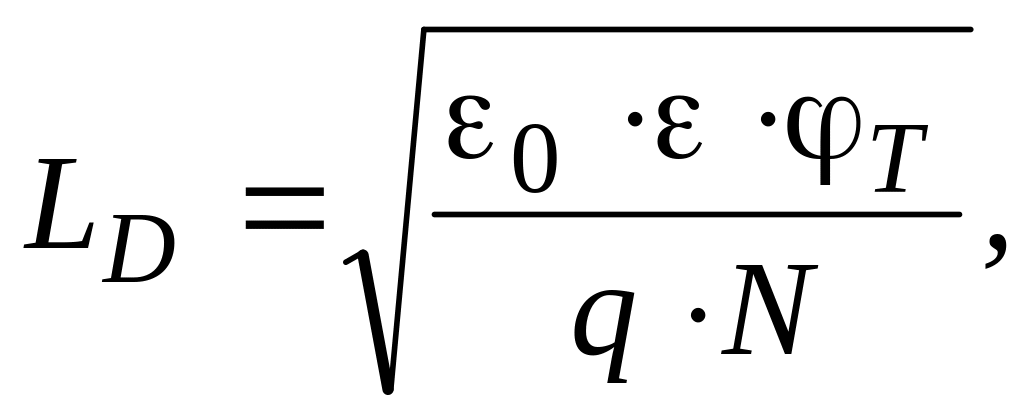 Поскольку N >> n, дебаевская длина в примесных полупроводниках гораздо меньше, чем в собственных. Кроме того, она практически не зависит от материала.
