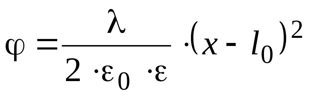 Плотность объемного заряда в обедненном слое примем постоянной и равной qN, где N — концентрация ионизированной примеси. Подставляя значение λ=qN в уравнение Пуассона (2.37) и используя граничные значения Е(l0) = 0 и φ(l0) = 0, получаем после двукратного интегрирования:
