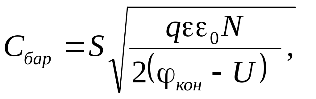 Таким образом, барьерная емкость плоского одномерного р-n-перехода может быть рассчитана по формуле плоского конденсатора.