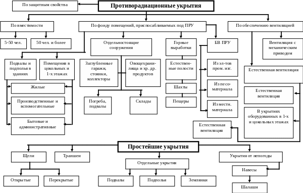 Схема 7.8.4 Классификация противорадиационных и простейших укрытий