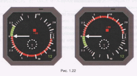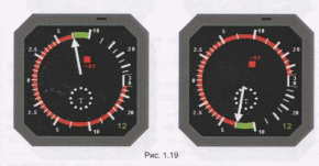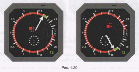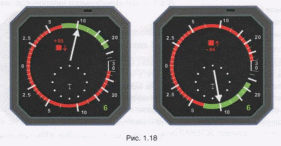 Действия пилота (рис. 1.17): так же, как и в предыдущем случае нельзя допускать, чтобы значения вертикальной скорости попадали в диапазоны, обозначенные на индикаторе КРАСНЫМИ дугами.