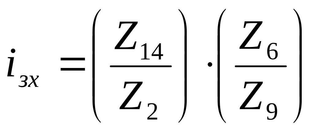 де Z2 ,Z6, Z12 і Z14 – кількість зубів відповідних зубчастих коліс.