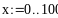 5. Создать цикл х:=0,..100 для определения точек интервала