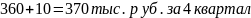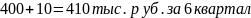 Для открытия филиала банка в конце первого квартала приобретается оборудование и офисная мебель на сумму 400 тыс. руб. с рассрочкой платежей в счет погашения основного долга на 2 квартала (начиная со второго) и начислением и выплатой процентов исходя из 25% годовых на сумму текущего долга. Амортизация оборудования и мебели начисляется по норме 10% в год.