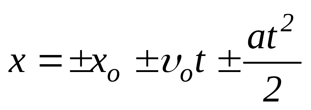 Уравнение прямолинейного равнопере-менного движения в координатной форме |