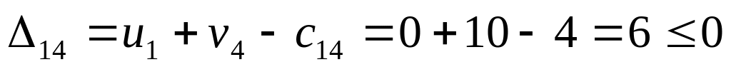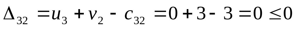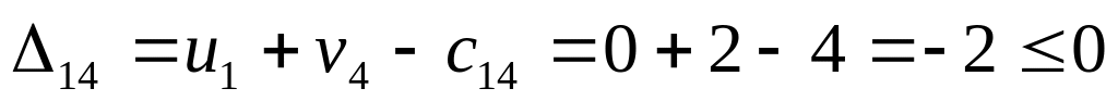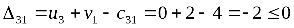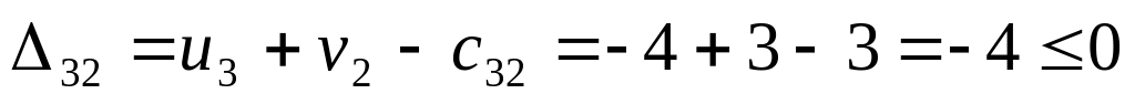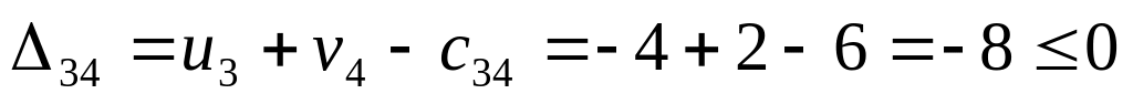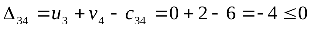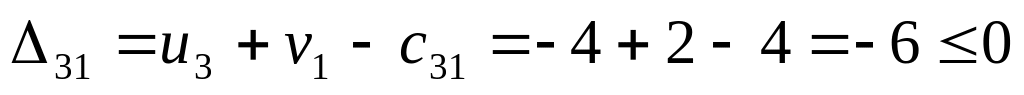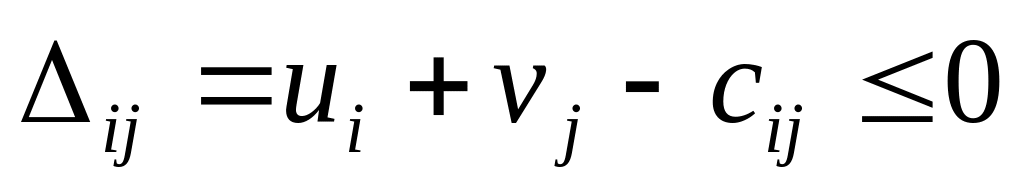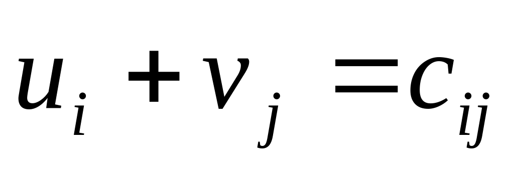 Группа равенств для базисных клеток используется как система уравнений для нахождения потенциалов. Данная система имеет m+n неизвестных ui и vj ( , ). Число уравнений равно m+n-1. Следовательно, чтобы найти ее решение достаточно задать значение одной неизвестной произвольно (например, u1=0), а остальные найти из системы.