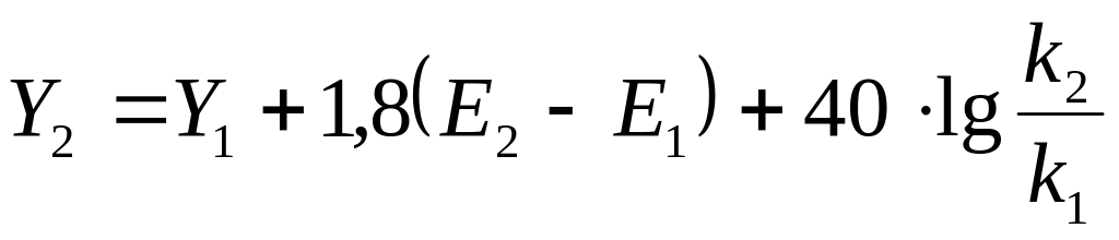 где Y2 и Y1 – уровни радиопомех, дБ, при напряженностях на проводах Е1 и Е2, кВ/см;