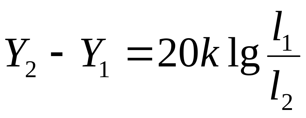 По мере удаления от линии уровень помех снижается. Между уровнями радиопомех Y4 и Y2 на расстояниях соответственно l1 и l2 существует зависимость