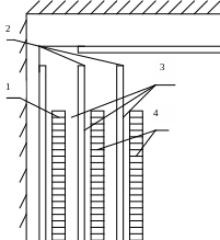 1 – Обмотка низкого напряжения (НН); 2 – барьеры; 3 – малые промежутки; 4 – обмотки высшего напряжения (ВН).