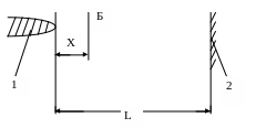 Рис. 2. Расположение барьера между электродами: Б – барьер, 1,2 – электроды