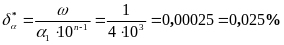 де α1- перша значуща цифра числа, n – кількість вірних значущих цифр, ω приймає значення 0,5 одиниці останнього розряду вірних значущих цифр у вузькому сенсі і (-1) останнього розряду вірних значущих цифр у широкому сенсі (смислі), тобто