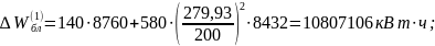 Через этот трансформатор проходит мощность генератора блока, поэтому расчет потерь ведем по графику нагрузки генератора (см. табл. №1, №3, №4, №6).