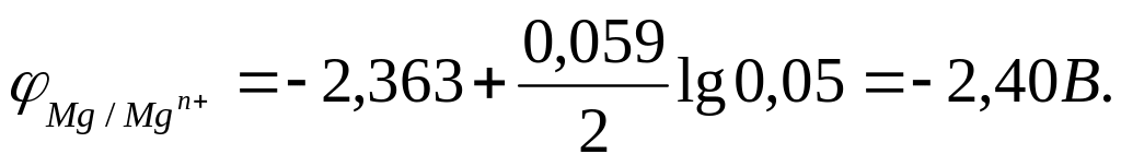 Электрод II: металл Mg электролит МgSО4 (0,05М)