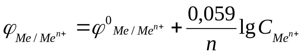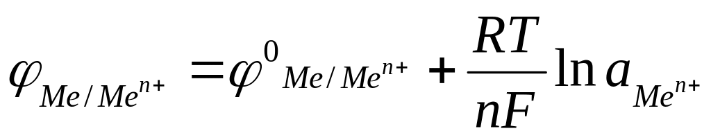где Ме/Меn+ потенциал металлического электрода в заданных условиях, В