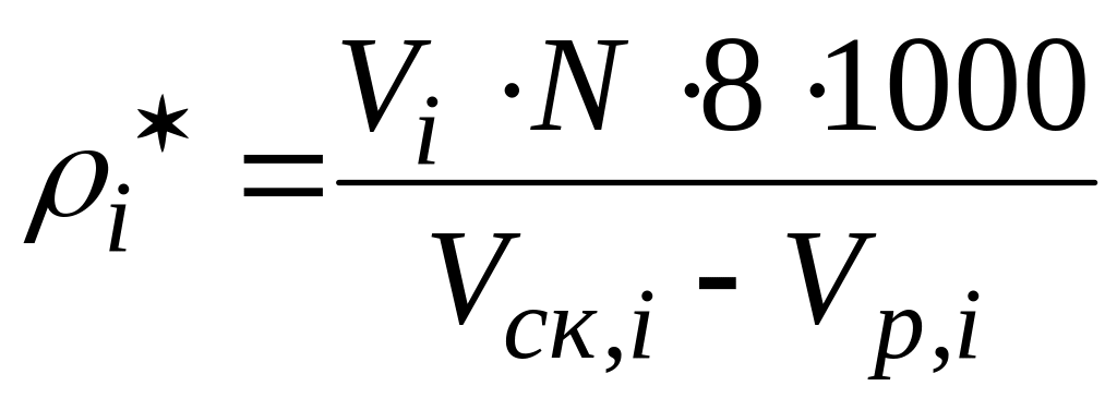 - розрахункова концентрація розчиненого кисню з врахуванням температури розчину та атмосферного тиску, мг/дм3 (визначена за формулою 5);
