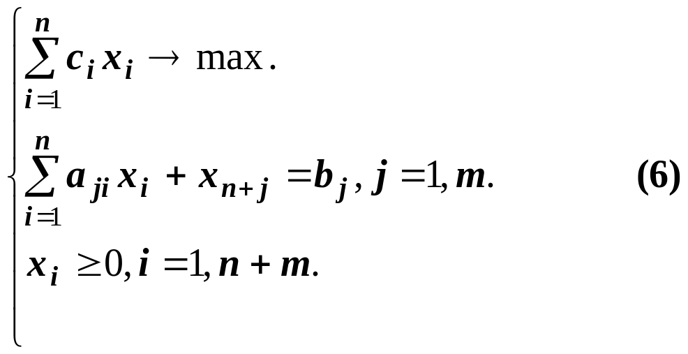 При этом размерность задачи (6) – число переменных плана - по сравнению с (4) увеличилась с n до n+m.