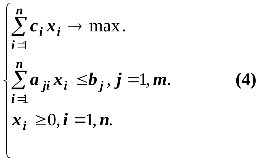 при каких интенсивностях n процессов получения прибыли (оказании различных услуг, производственных процессов), в которых используются m видов ресурсов (факторов производства) с известными предельными интенсивностями использования этих ресурсов выручка от реализации (прибыль) будет максимальна в случае, когда интенсивность расхода каждого ресурса и интенсивность получения прибыли (выручки) в каждом из процессов линейно зависят от интенсивности этого процесса.