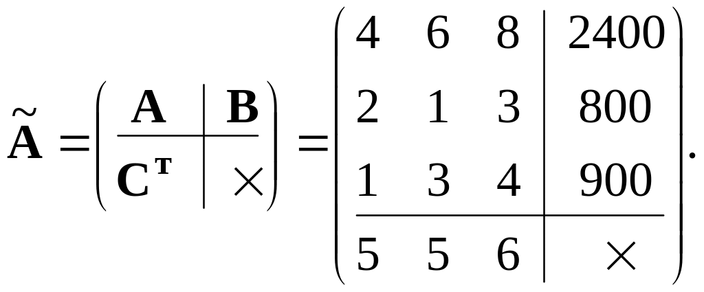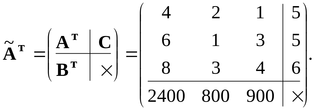 Для ответа на третий вопрос задания сформулируем задачу линейного программирования, двойственную к исходной. Для этого получим расширенную матрицу (4.1) исходной задачи (11):