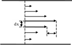 Осы күштің әсерінен түтіктің көлденең қимысындағы сұйықтардың ағу жылдамдықтары әр түрлі болады, түтіктің осі бойымен ағатын сұйық жылдамдығы ең жоғары мәнге ие болса, түтік қабырғасына жақындаған сайын оның жылдамдығы төмендей береді, ал түтік қабырғасына жанаса ағатын сұйық жылдамдығы төмен мәнге ие болады v1< v2< v3<v4. Осының әсерінен қозғалу бағытына перпендикуляр бағытта жылдамдық градиенті dv/dx пайда болады (1 сурет).