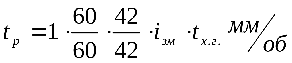 Рівняння кінематичного ланцюга для нарізування різьби: