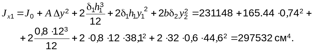 где S0н и S0в – статические моменты сечений усиления нижнего и верхнего поясов балки относительно оси Х0. Момент инерции усиленного сечения